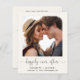 Elément simple et chic crème légère à petit prix ou faire-part de mariage privé et invitation à la réception post-mariage avec votre photo, "heureux toujours après" écrit dans un script élégant avec des swashes et vos prénoms, date mariage et emplacement dans la typographie moderne. Au contraire, personnalisez votre faire-part et votre invitation de manière plus détaillée, entrez l'adresse de votre site Web mariage pour créer un code QR pour que vos invités puissent scanner pour plus d'informations et pour RSVP en ligne, et ajoutez vos noms dans un script de type signature.