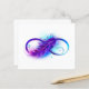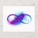 Infinity symbole with a beautiful feather painted in purple and blue bright colors on white background