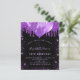 Pour un élégant 18ème anniversaire (ou tout âge). Un arrière - plan noir élégant. Décoré de faux parties scintillant violet et de ballons. Personnalisez et ajoutez un nom, un âge et des détails de la fête. Le nom est écrit avec un script de style manuscrit