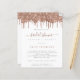 Un rapport qualité-prix BUDGET alternative sur une taille plus petite 4,5 x 5,6" semi-brillant poids 110lbs, qui est d'une épaisseur similaire à une carte postale (cependant ne convient pas à l'utilisation comme carte postale.) VEUILLEZ NOTER qu'il y a UN invitation par feuille. Fête des mariées Rose Parties scintillant de budget. Une bordure de parties scintillant en or rose est en haut de chaque côté, et la Fête des mariées dans un script de style manuscrit. Personnalisez facilement le texte à vos propres détails.
