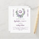 Fond blanc. Une couronne de fleurs faite de fleurs de lavande et de verdure d'eucalyptus à l'aquarelle. Personnalisez et ajoutez un nom et des détails.