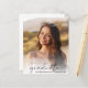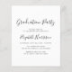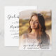Élégante invitation à la fête de remise des diplômes avec la photo de la grad superposée avec "diplômé" dans un script moderne et leur nom et année de classe dans la simple typographie. Au contraire, ajoutez les détails de la fête principale.