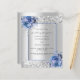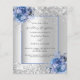 Faux arrière - plan de style argent décoré de roses bleus, fleurs et confettis. Personnalisez et ajoutez vos noms et les détails du mariage. Lettres noires. 1 feuille = 1 invite imprimé bord à bord.
