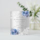 Pour une mariage élégante et romantique. Un arrière - plan à l'aspect faux argenté décoré de fleurs bleues, de roses et de dentelle blanche. Personnalisez et ajoutez vos noms et détails. 1 feuille = 1 invite imprimé bord à bord.