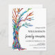 Invitation votre famille à leur Reunion de famille avec cette invitation élégante. Il dispose d'un arbre généalogique aux couleurs de l'arc-en-ciel et de l'espace pour vous customiser avec votre nom de famille et vos détails. Ce design unique est une impression de ma mosaïque d'arbre généalogique, qui a été faite à partir de minuscules morceaux de verre aux couleurs vives. Mosaïque originale © Michele Davies.