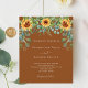 Arrière - plan de couleur brun brun brun décoré de tournesols, de verdure d'eucalyptus. Personnalisez et ajoutez vos noms et les détails de votre fête. 1 feuille = 1 invite imprimé bord à bord.