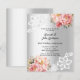 Pour un 60e anniversaire de mariage élégant et romantique. Un arrière - plan à l'aspect faux argent décoré de fleurs d'or rose et rose, de dentelle rose et blanche. Personnalisez et ajoutez vos noms et détails. 1 feuille = 1 invite imprimé bord à bord.
