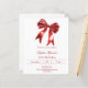 Un arrière - plan blanc, décoré d'un grand arc rouge. Personnalisez et ajoutez un nom et des détails du parti. 1 feuille = 1 invite imprimé bord à bord.