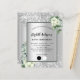 Faux arrière - plan de couleur argent décoré de fleurs blanches, de fleurs, de verdure d'eucalyptus et de parties scintillant faux argent, scintille. Personnalisez et ajoutez votre nom, les détails de la fête et la palette de couleurs de la tenue. Lettres noires. Cliquez sur "modifier la conception" pour modifier les couleurs, ajouter/supprimer d'autres blocs de couleurs ou réduire la palette si vous avez beaucoup de texte. Modifiez à la fois la couleur de bordure et la couleur de remplissage. 1 feuille = 1 invite imprimé bord à bord
