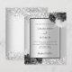 Arrière - plan à l'aspect argent faux décoré de fleurs, fleurs et parties scintillant faux argent, scintille. Personnalisez et ajoutez vos noms et les détails du mariage. Lettres noires.