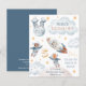 Un espace et astronaute thème pour enfants Anniversaire Invitation de fête. Sur un arrière - plan blanc, cinq animaux habillés en astronautes, dont un ours, un renard, un hibou, un chien et un lapin, sont vus attraper des étoiles jaunes et monter dans une fusée. Le nom de votre enfant fête d'anniversaire est écrit dans un nuage, leur âge dans un texte décoratif jaune, et les détails de l'événement sur une planète rose. Personnalisez-vous en ajoutant vos coordonnées complètes à l'avant et à l'arrière.