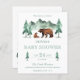 Papier Invitation au Baby shower d'ours de forêt verte ne
