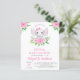 Personnalisez ce Tropical Rose Floral Aquarelle Girly Elephant Baby Baby shower virtuel ou Baby Sprinkle Invitations sur arrière - plan blanc avec votre message et les détails. Cette invitation chic comprend des fleurs roses rousses et une végétation botanique moderne avec une typographie de script mignonne et élégante pour la célébration spéciale Mère à être.