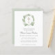 Une invitation en papier moderne personnalisable première sainte communion abordable avec un délicat lis de la vallée design floral autour d'une croix ornée d'or imprimé, sur un arrière - plan propre avec lettrage élégant.