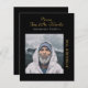 Célébrez votre journée spéciale avec style avec cette invitation d'anniversaire noir et or abordable! Dotée d'un élégant arrière - plan noir et d'accents dorés, cette invitation est parfaite pour toute occasion. Ajoutez votre photo préférée pour la rendre encore plus spéciale. Faites connaître à vos amis et à votre famille votre fête d'anniversaire avec cette belle invitation !
