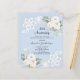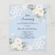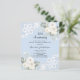 Pour un 25e anniversaire de mariage élégant et romantique. Un fond bleu clair orné de fleurs blanches, de roses et de dentelle blanche. Personnalisez et ajoutez vos noms et détails.