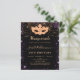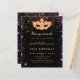 Pour une Masquerade élégante, 50e (ou tout âge) anniversaire. Un arrière - plan noir élégant. Décoré avec de la poussière de parties scintillant en faux or violet et un masque masqué doré. Personnalisez et ajoutez un nom, un âge et des détails de la fête. Le nom est écrit avec un script de style manuscrit