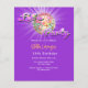 Une invitation à une fête féminine et féminine 18ème (ou tout âge). Une couleur arrière - plan violet lavande. Décoré d'une boule de disco colorée. Texte : Faisons la fête ! Personnalisez et ajoutez un nom et des détails du parti. Le nom est écrit avec un script de style écrit à la main. 1 feuille = 1 invite imprimé bord à bord.