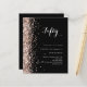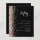 Pour une soirée d'anniversaire élégante de 50ème (ou tout âge). Un arrière - plan noir classique. Décoré de confettis d'or rose. Personnalisez et ajoutez un nom et des détails du parti. 1 feuille = 1 invite imprimé bord à bord.