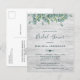 Invitez vos amis et votre famille à votre fête de douche de mariage avec ces cartes postales d'invitation à la douche de mariage rustiques en bois avec eucalyptus, élégantes mais décontractées. Ces cartes postales d'invitation de mariage à petit budget doivent être envoyées en tant que cartes postales géantes, ce qui peut entraîner des frais d'affranchissement standard, mais elles n'ont pas besoin d'enveloppe ou d'étiquette d'adresse de retour. Personnalisez avec le nom, la date de la douche de mariage, le lieu et toute autre information. Ajoutez le site web et toute autre information au verso. Ces invitations de douche de mariage uniques avec verdure feront une impression durable. COPYRIGHT © 2020 Judy Burrows, Black Dog Art - Tous droits réservés. Invitation à la douche de mariage avec verdure d'eucalyptus à petit budget