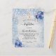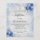 Papier Invitation de baptême argenté bleu garçon floral b