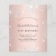 Une invitation moderne, élégante et glamour pour une fête d'anniversaire de 21 ans (ou tout âge). Un fond métallisé de faux rose or avec une poussière de faux strass argentés. Le nom est écrit avec un style de lettre manuscrite grise moderne. Personnalisez et ajoutez les détails de votre fête.