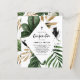 Famille d'Invitations et amis à votre événement avec cette invitation de confirmation personnalisable. Il présente des illustrations d'aquarelle de feuilles et de plantes tropicaux avec des feuilles de feuille d'or imitation et des accents d'aquarelle de brosse noire. Parfait pour les événements d'été et tropicaux. Personnalisez cette invitation de confirmation tropicale en ajoutant vos détails.