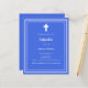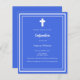 Un arrière - plan bleu royal, décoré d'un cadre blanc, et d'une croix blanche Personnalisez et ajoutez le nom et les détails. Texte blanc. 1 feuille = 1 invite imprimé bord à bord.