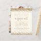Un rapport qualité-prix BUDGET alternative sur une taille plus petite 4,5 x 5,6" semi-brillant poids 110lbs, qui est d'une épaisseur similaire à une carte postale (cependant ne convient pas à l'utilisation comme carte postale.) VEUILLEZ NOTER qu'il y a UN invitation par feuille. Gold Parties scintillant Frontières Photo Fiançailles Cream Invitation. Les bordures de parties scintillant en faux or sont en haut et en bas sur le devant et téléchargez votre photo préférée de vous deux sur le dos pour remplacer l'exemple d'image montré. Le fiançailles est mis dans un style d'écriture informelle et le reste du texte que vous pouvez facilement personnaliser.
