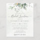 Belle invitation de déjeuner de mariage avec eucalyptus aquarelle et feuilles dorées.
