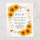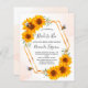 Pour une douche de mariée d'été et d'automne. Un fond aquarelle blanc et or élégant. Un faux cadre géométrique en or et des abeilles butineuses. Avec le texte : Future mariée et le nom de la future mariée sur le devant écrit avec un style de lettrage moderne à la main. Lettres noires.