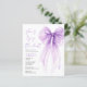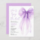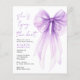 Élégante invitation à la douche nuptiale économique avec une belle aquarelle d'un arc de coquette violet, "Elle attache le noeud" écrit dans un script chic violet, et son nom et les détails de votre événement en lettres modernes.