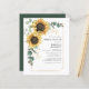 Invitation de Fête des mariées Budget Sunflower Eucalyptus. Créez une carte d'invitation à la douche nuptiale fleurie de tournesol moderne avec ce modèle mignon avec un beau bouquet fleuri rustique avec une typographie simple et moderne. CONSEIL : Des cartes de suite mariage comme RSVP, des programmes de mariage, des bannières, des tapisseries, des étiquettes cadeaux, des affiches, et d'autres cadeaux et cadeaux de mariage sont disponibles dans la collection ci-dessous avec ce design.