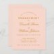 Une simple invitation de fiançailles avec une couleur moderne : rose vif. Il n'a que du texte doré sur arrière - plan blush. Les noms sont écrits dans un élégant script calligraphique, le reste en casquette. la première ligne est le texte voûté.