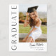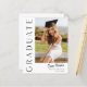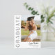 Cette élégante invitation à la graduation de photo à budget élégant et moderne comprend une photo verticale et un titre avec un nom de script personnalisable et du texte sur le devant. Le dos a une invitation avec les détails de la fête. Une excellente façon de présenter votre diplômé. Cliquez sur le bouton Modifier pour personnaliser cette conception.