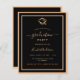 Une invitation moderne, élégante et raffinée. Un arrière - plan noir décoré de cadres dorés et d'un casquette. Personnalisez et ajoutez un nom et des détails du parti. Texte blanc.