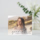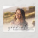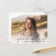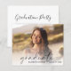 Élégante invitation à la fête de remise des diplômes, avec la photo du diplômé superposée avec "diplômé" dans un script moderne et leur nom et année de classe dans la simple typographie. Au verso, ajoutez les détails de la fête de remise de diplômes.
