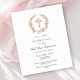 Une élégante décoration de la Première Sainte Communion présente une croix rose dans une couronne fleurie en haut de l'invitation. Le texte est une combinaison de polices traditionnelles italiques et droites.