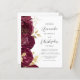 Papier Invitation de mariage à code QR floral or Bourgogn