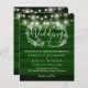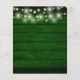 Doté de jolies lampes à cordes et d'une guirlande florale dessinée à la main, cet élégant faire-part de mariage en bois rustique et économique peut être personnalisé avec vos informations en lettrage chic sur un arrière - plan de panneaux en bois vert émeraude. Conçu par Thisisnotme©