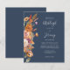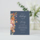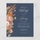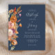 Le bord gauche de cette invitation de mariage romantique présente un bouquet floral à l'aquarelle dans des tons terre d'automne d'orange brûlé, de terre cuite et d'ivoire. Le texte personnalisable combine des polices manuscrites, copperplate et italiques en gris pâle sur fond bleu marine. Le verso est un bleu marine uni coordonné. REMARQUE : les enveloppes ne sont pas automatiquement incluses avec ces invitations économiques, alors n'oubliez pas de choisir l'option "enveloppes blanches" !