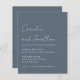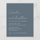 Budget Minimaliste Dark Dusty Blue Slate Typewriter et Script Typography Faire-part de mariage avec les détails du site RSVP.
