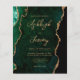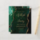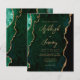 Cette invitation de mariage élégante présente une image de fond en aquarelle d'agate verte émeraude avec des paillettes dorées fausses. Le texte personnalisable combine une écriture manuscrite moderne dorée, un copperplate et des polices italiques. Le verso présente un design coordonné d'agate verte émeraude et dorée.
