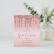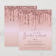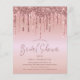 Une alternative papier économique. Les enveloppes sont une option supplémentaire. Des gouttes de paillettes factices glamour dans une bordure rose or bordent le bord supérieur des deux côtés. Bridal Shower est écrit dans une police moderne et élégante dans une teinte coordonnée et le reste du texte peut être facilement personnalisé.