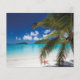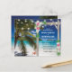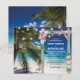 Cartes d'invitation de mariage de destination plage pas cher avec un cadre de plage de paradis tropical, étoile de mer, guirlandes lumineuses élégantes, un palmier, un arceau en bois floral et un modèle de mariage moderne.