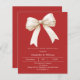 Pour une fête de Noël en famille et entre amis. Une carte simple et élégante décorée d'un grand arc crème. arrière - plan rouge. Personnalisez et ajoutez les détails. 1 feuille = 1 invite imprimé bord à bord.