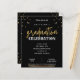 Une alternative abordable de qualité sur un papier plus petit mais toujours résistant. RAPPEL AMICAL pour utiliser le menu déroulant pour sélectionner la QUANTITÉ de feuilles que vous allez acheter. Ceci est une invitation de remise de diplôme de script moderne amusant noir et or. Paillettes d'or faux modernes et embellissements de ligne dorée. La remise de diplôme est définie dans une police de style écriture manuscrite de script moderne. Facilement personnalisable !
