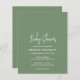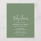 Invitation de baby shower moderne sauge verte budget avec un design simple avec le titre de l'événement dans une élégante typographie de script et vos détails de l'événement dans une police sans serif minimaliste. Cette invitation baby shower chic est neutre pour le sexe, ce qui le rend parfait si vous avez un bébé garçon ou petite fille et est parfait pour un baby shower automne / automne.