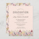 Une belle bordure florale d'aquarelle de fleurs sauvages décore le bord inférieur de cette invitation branchée de fête de graduation boho. Customisez le texte gris fusain sur un arrière - plan rose vif avec le nom du diplômé en écriture manuscrite ; l'année scolaire et scolaire en sans serif ; et la date, le lieu et les détails RSVP en police serif. Le dos de la carte est muni d'un motif de coordination de fleurs sauvages sur un arrière - plan rose vif.