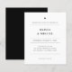 Simple faire-part de mariage noir et blanc. Police moderne avec un joli coeur et un arrière - plan noir solide sur le dos.